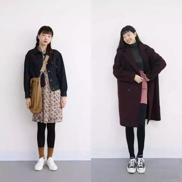 碎花裙加牛仔外套加堆堆袜加小白鞋,文艺小清新满满。酒红色大衣搭配灰色内搭,再来条粉色半身裙,让你小性感中还带着点可爱。