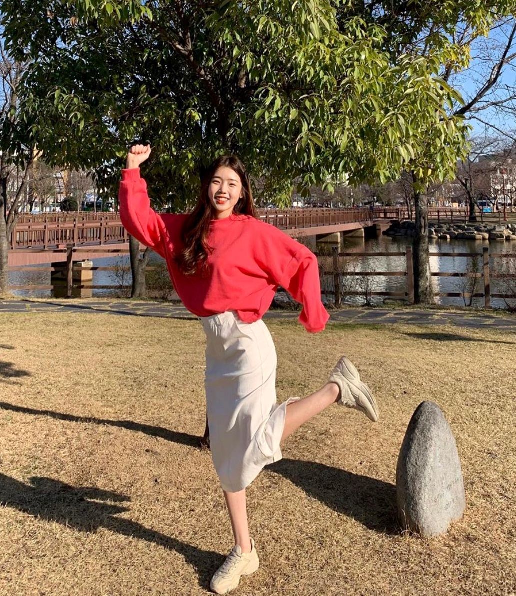 裙子的长度如果选择刚刚遮住pp,显高的同时对于梨型身材很包容,能够最大程度的优化的腿部比例,天冷可以加打底袜~