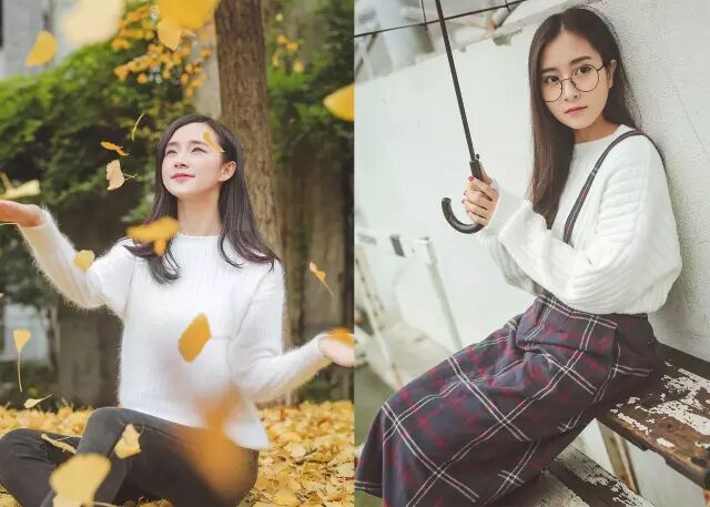 浅色毛衣搭配深色裤子