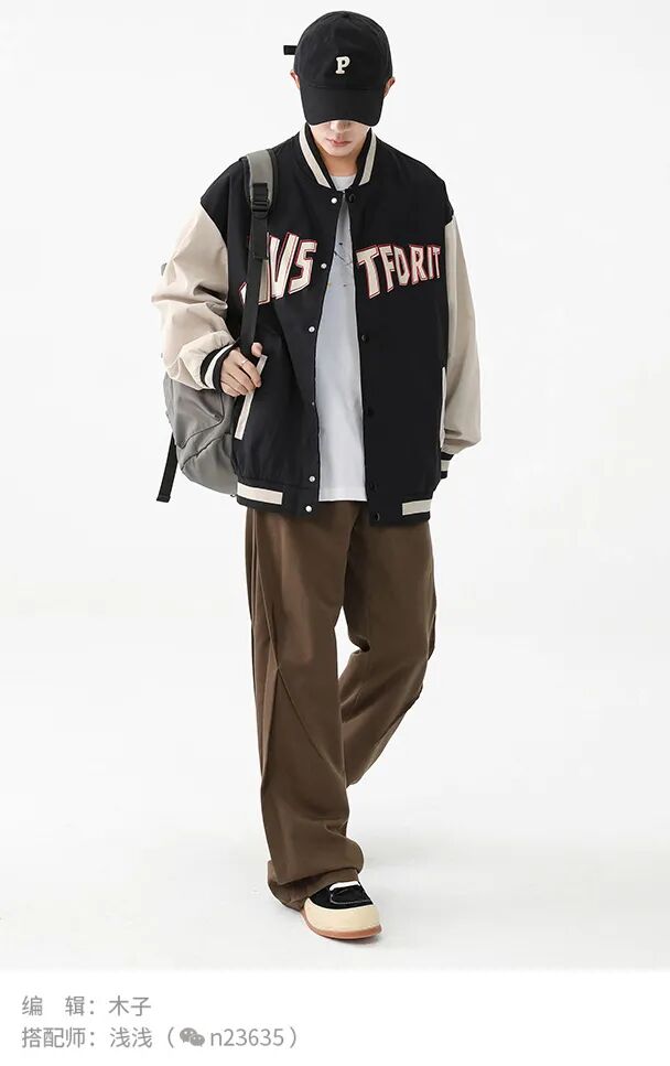 学院派的棒球服通常采用颜色较沉的纯色款式,整体造型更趋向于常规款棒球。