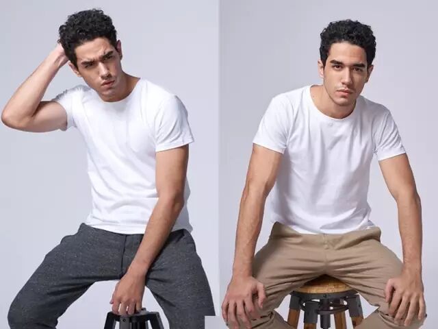 不过穿白T也有一大困扰,容易因布料薄透造成激凸或露点,看起来既尴尬又不礼貌,想要单穿又不想看起来太像内衣,请挑选290-390磅的棉质 T-Shirt ,这样单穿也不会太热。因为布料较为厚实,视觉上较挺直,就有了较高的修饰度。