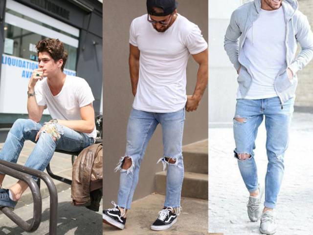 想要穿出有质感且干净的夏日穿搭,但又希望增加一点个性随意感,那就可以白T搭配今年春夏流行的微破损水洗单宁。这样的搭配方式,能维持夏天追求利落舒服的风格,更简单地穿出潮流感,是今夏白T搭配的首选。