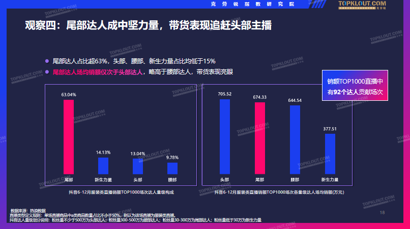 观察四:尾部达人成中坚力量,带货表现追赶头部主播