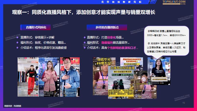 观察一:同质化直播风格下,添加创意才能实现声量与销量双增长