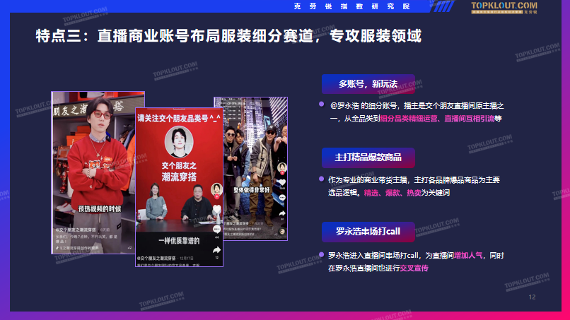 特点三:直播商业账号布局服装细分赛道,专攻服装领域