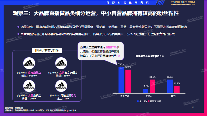 观察三:大品牌直播做品类细分运营,中小自营品牌拥有较高的粉丝粘性