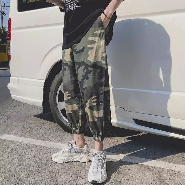 迷彩印花的点缀绝对会是这个夏天的一大亮点,显得很与众不同,也讲男性身上的沉稳内敛发挥的很好,得到了一致男生的好评。在服饰上可以选择一件黑色的T恤来搭配,因为黑色本身也自带低调感,所以与迷彩束腿裤会是一个很好的组合,在踩上一双气垫鞋,街头个性风满满。