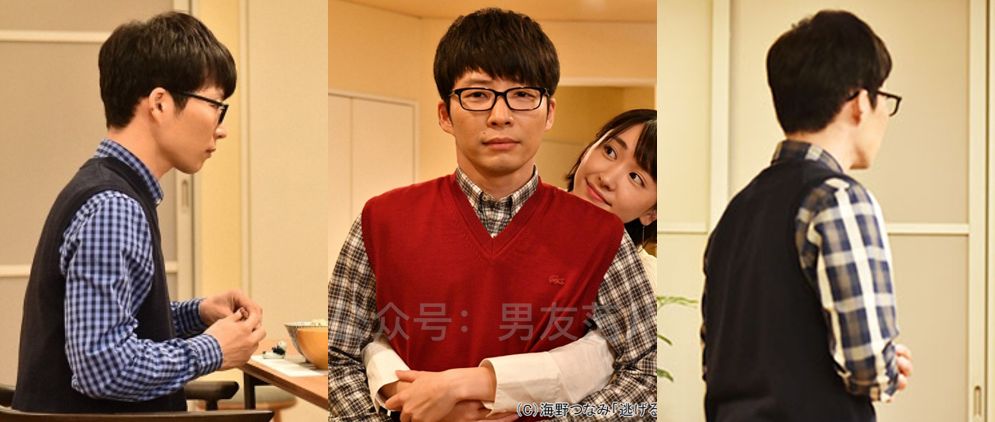 还值得一提的是男女主在穿搭上的暗暗发糖。比如用内搭毛衣和女主的外套呼应;或者材质上的配合, 女生穿牛仔背带裤,男生穿牛仔外套。