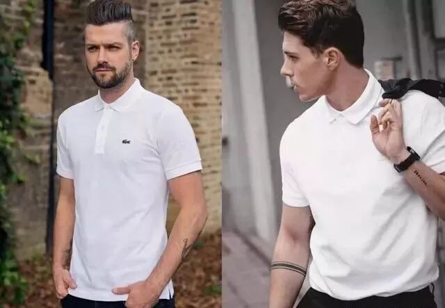 各位,穿POLO衫立起领子特别“土”。扣上全部纽扣后,翻下衣领刚好接触脖子最合适,太过紧崩会显得脖子粗头也大,有一个好比例是我们穿衣细节时刻需要注意的。