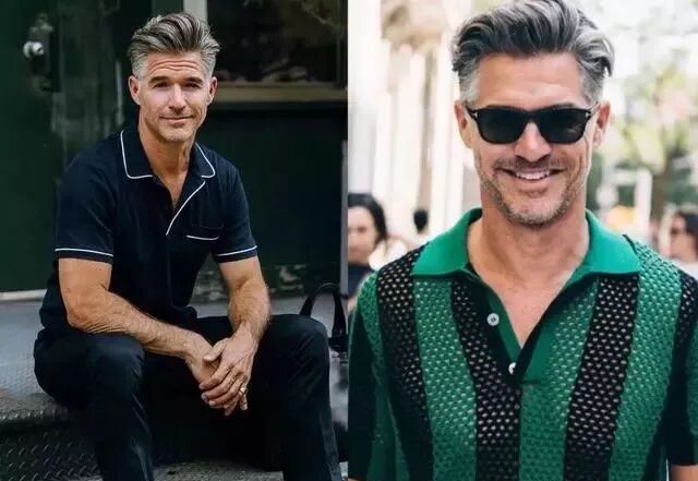 翻了几百张街拍Look,不规则细条纹图案上身会让POLO衫“变洋气”,也可以给基础款的牛仔裤、休闲鞋带上复古风格,有一种“老气”叫复古POLO衫。