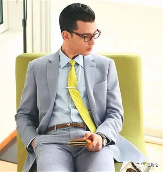 2、如果西装的色彩不那么鲜艳,那么你的衬衫可以选择比较跳跃的色彩,比如粉色、浅黄色或者湖蓝色。