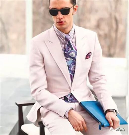 多选用颜色清爽的粉色系领带、衬衫配搭同样素雅的夏季西服是错不了的。