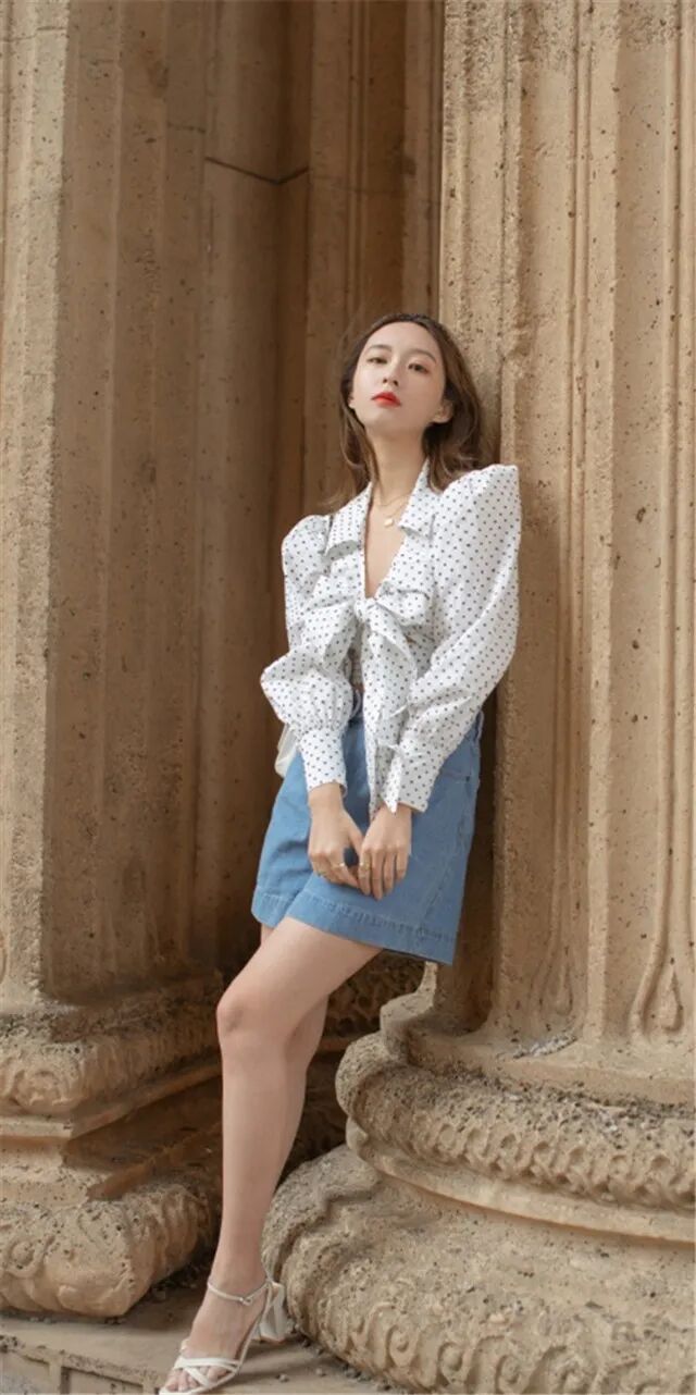 这样的波点非常时髦,而且是自带时髦的属性,穿上就是经典又复古的风格,而且如果再加上一些独特的设计,比如大蝴蝶结的装饰,那么这件上衣绝对是吸睛又个性的存在,炸街绝对没问题。
