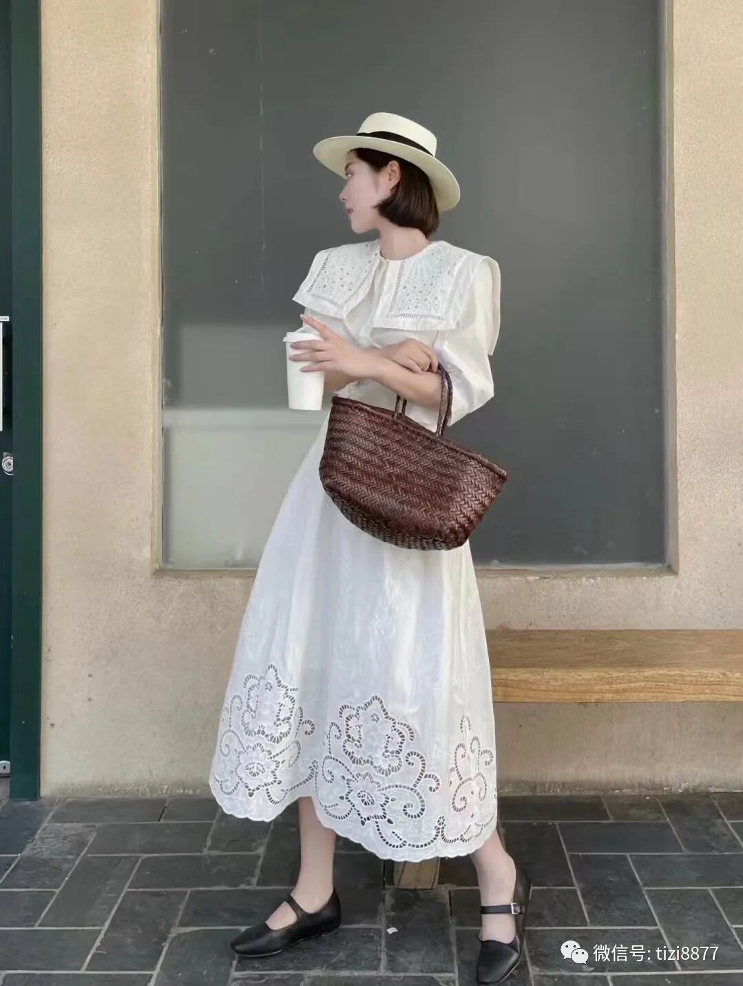 干净又温柔的搭配,你可以永远相信蓝白,落落大方的一套,镂空刺绣很抓女生的心呀,搭配牛仔裙日常就很加分。
