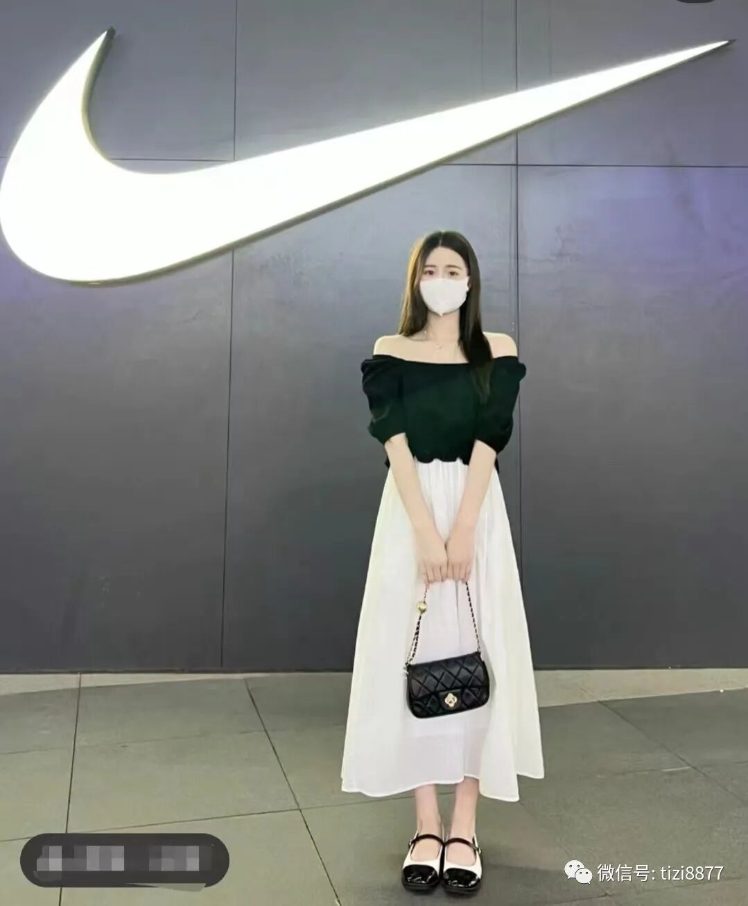 look4 黑色衬衫+白色半裙