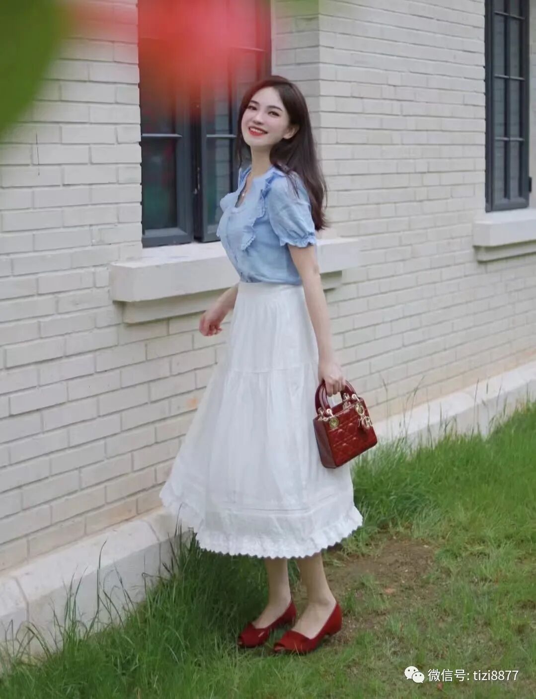 一组蓝衬衫配白半裙的搭配,蓝白配真的很绝哇,干净温柔不扎眼,穿出很自然的松弛感,还搭配了红色的鞋包呀,法式氛围感拉满。