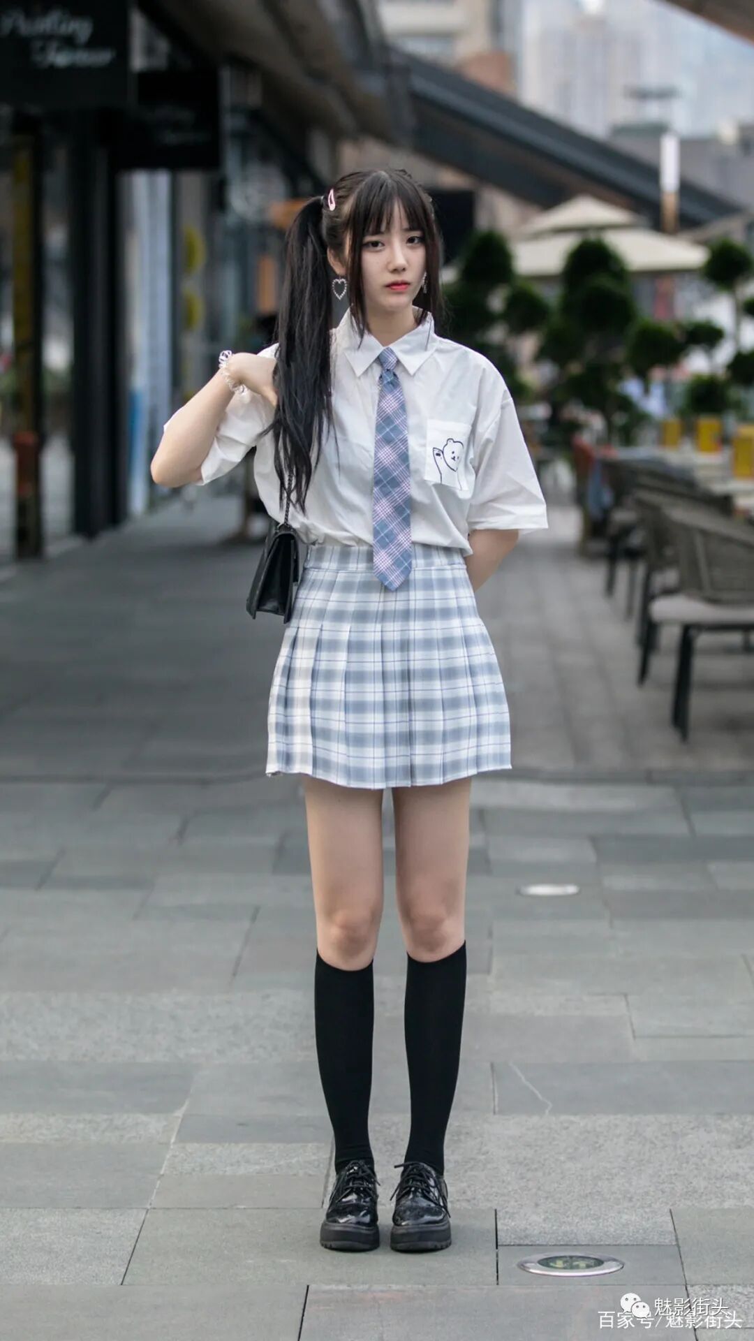 JK制服一种很有学生味的穿搭方式,在炎炎夏日用白衬衫搭配JK制服,非常适合在校学生,或者二十岁左右的年轻女孩,显得很有青春活力感。一件短袖白衬衫,搭配一条百褶裙,一条领带、一双小腿袜就是最基本的JK制服穿搭。如果觉得基础款的JK制服过于简单,领带和百褶裙可以选择带有维希格纹的图案,这样可以丰富视觉效果,显得更年轻、更好看。