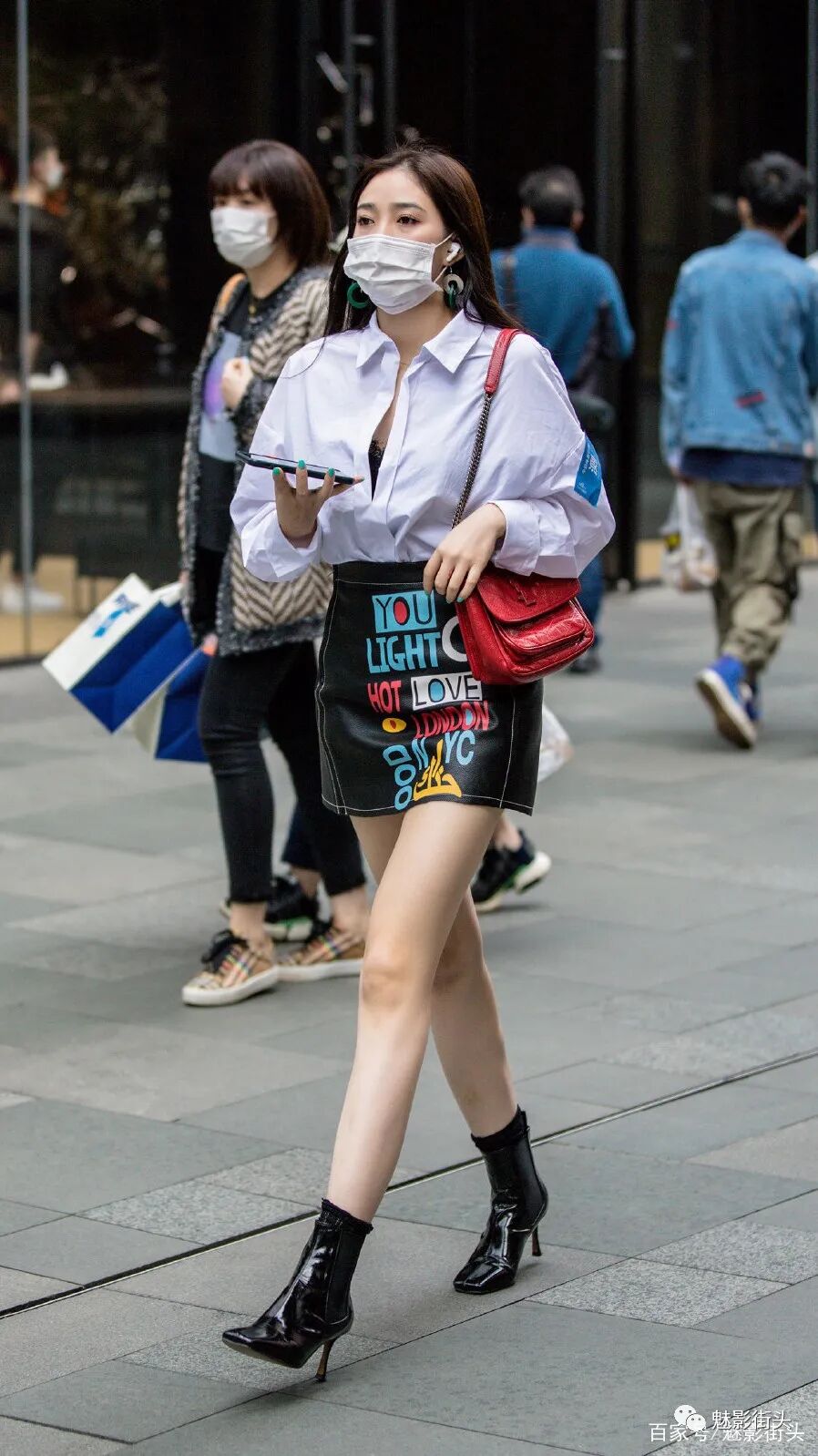 示范③:白衬衫+皮裙