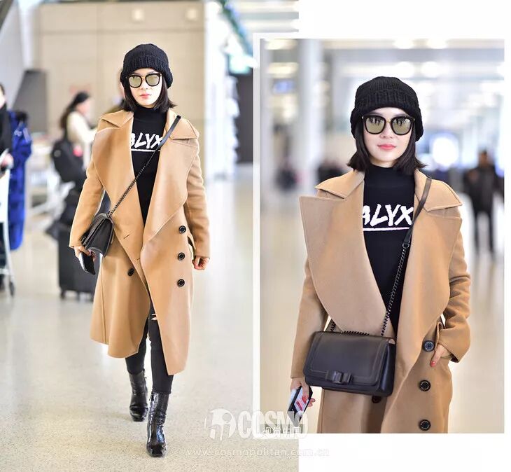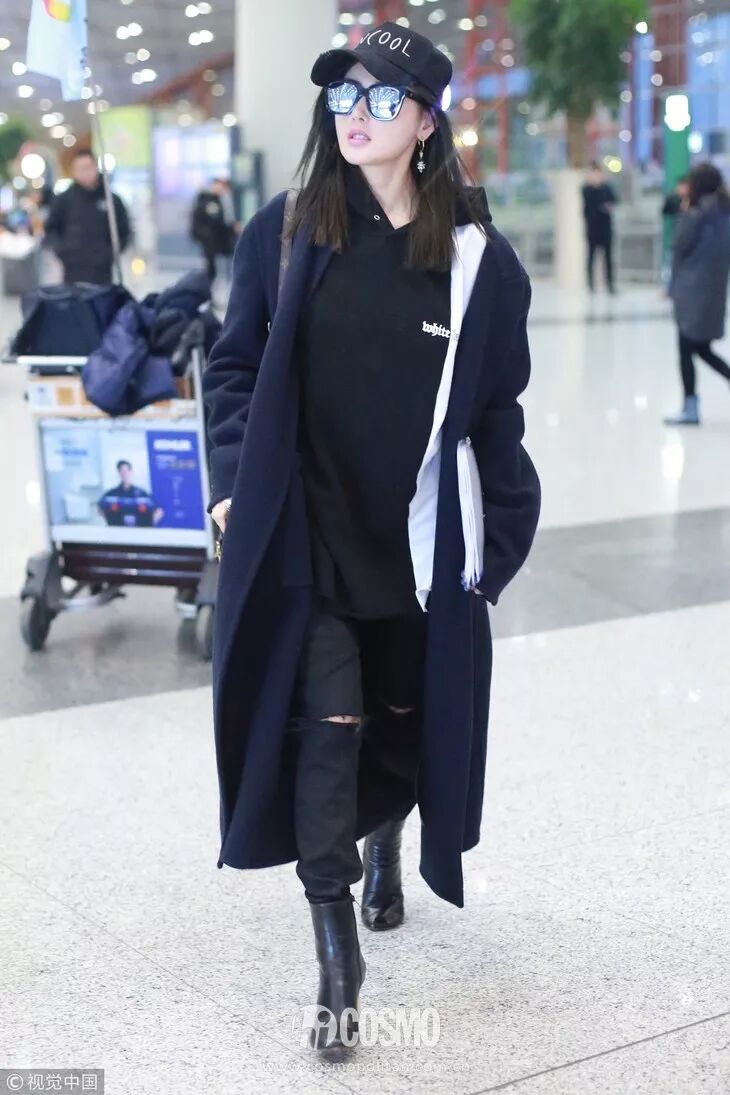 最近张天爱也是爱上了这种酷酷的穿搭,经常一身黑的现身机场,卫衣这件街头意味十足的单品自然也成为了她钟爱的单品,用来搭配毛呢大衣效果也相当不错。