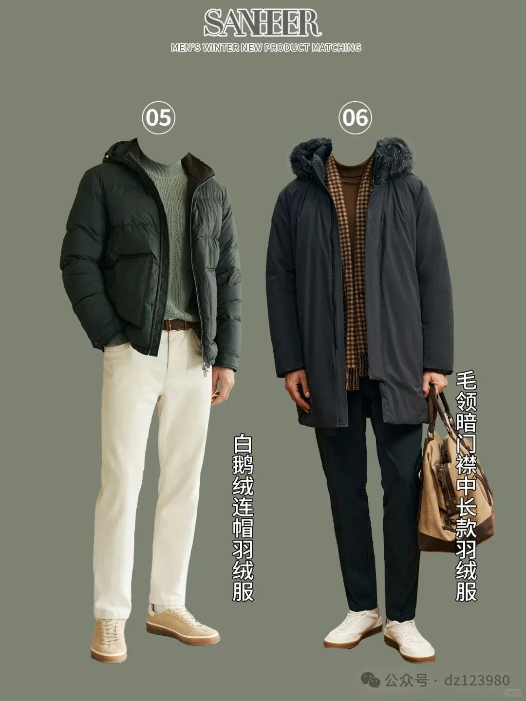 第一套:墨绿色羽绒服与卡其绿的温暖碰撞