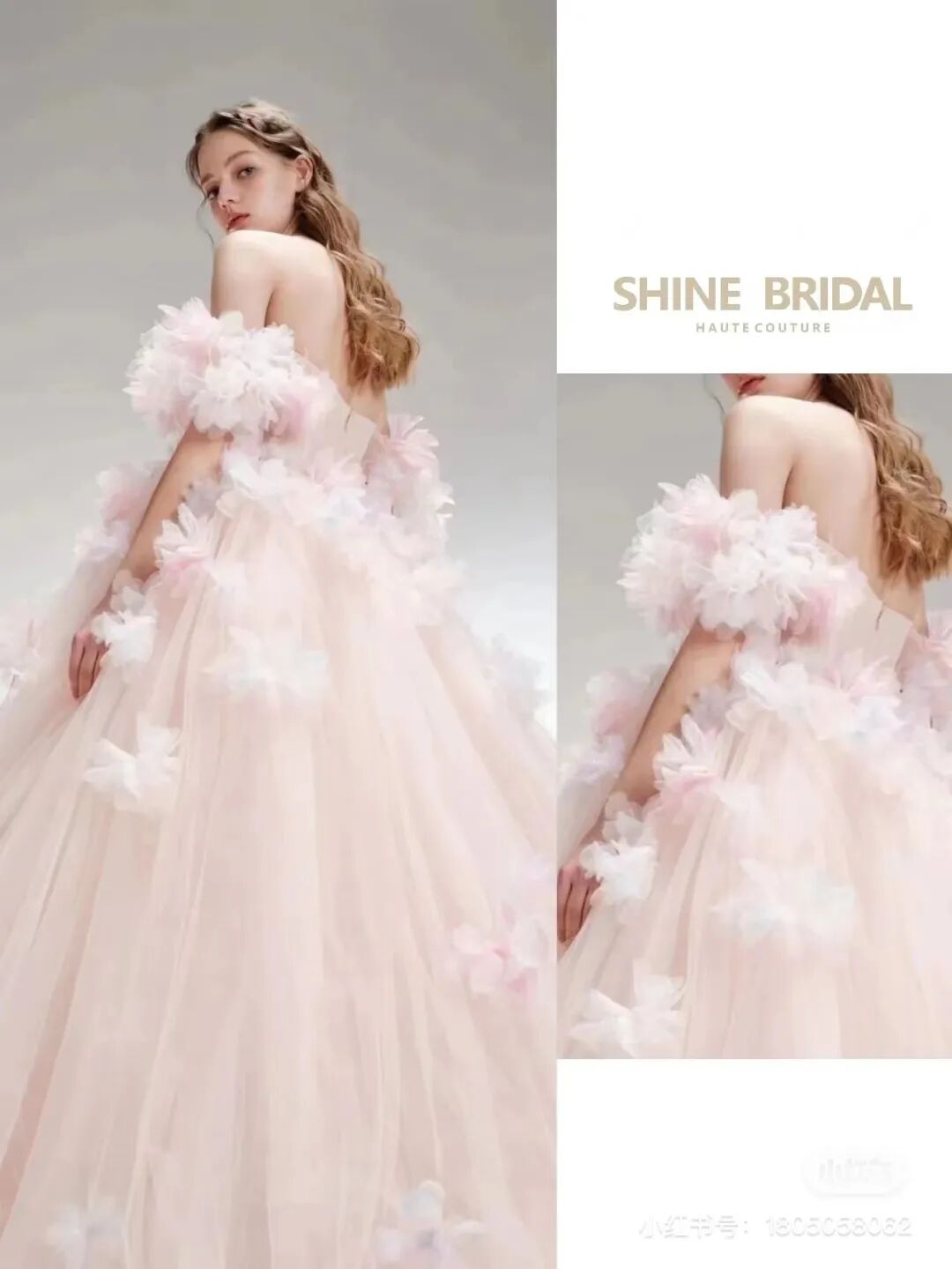 这身粉色公主纱裙来自INFENG,是个独立婚纱礼服设计师品牌,以设计师名字命名,也有“因你而缝”的寓意。是一个2022年刚成立的新品牌,还没啥声量,作品也还不多。