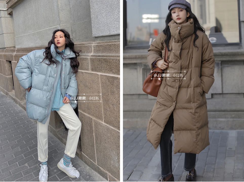其他棉服or羽绒服也都是彩色为主,baby蓝的短款长度