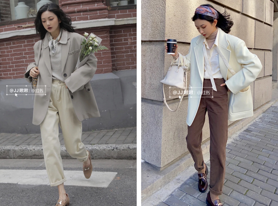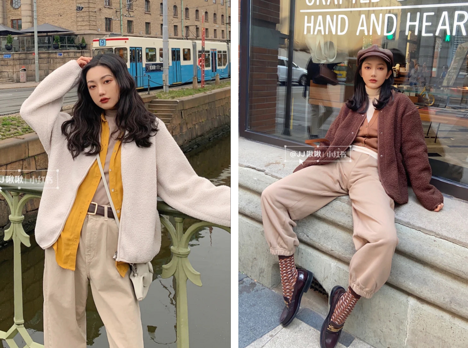 JJ啾啾是第一个惊艳我的小红书穿搭博主,风格偏港式复古,对颜色的搭配特别好看,叠穿也是一绝!