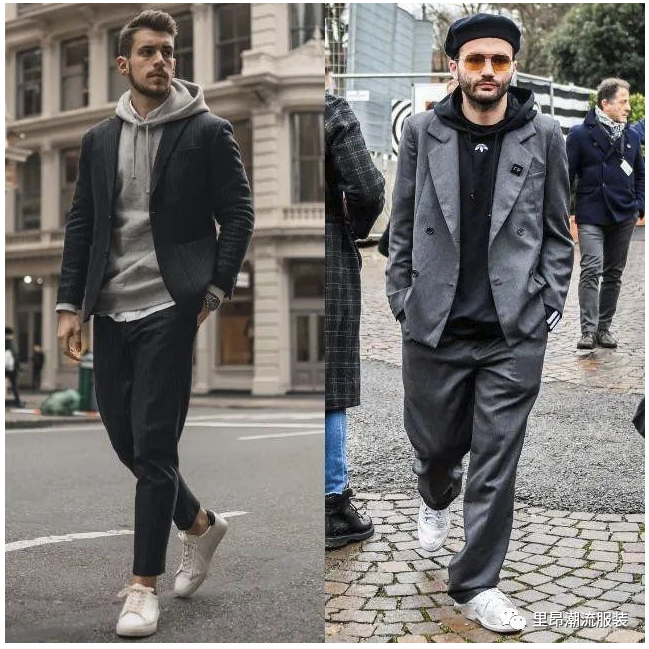 首先,冬天最不可或缺的单品就是帽子和T恤。舒适的帽T是冬天的最佳伴侣,但如果整个冬天都穿同一套装扮,也会让人感到视觉疲劳。这时,可以选择成套的西装里面搭配帽T,瞬间就能有不同的视觉效果。如果想要展现身材线条,可以选择合身的西装外套和九分窄管裤,再配上一双小白鞋,就能营造出利落的气场。对于身材较粗壮的男士,可以选择剪裁宽松的西装外套和宽裤,搭配球鞋,最后用典雅的贝蕾帽点缀,中和宽松的视觉感。