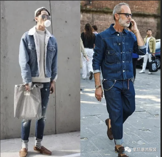 此外,牛仔单品也是衣柜里必不可少的。以全身同色系的方式搭配牛仔单品,三秒就能帅气登场。如果担心单调,可以将裤管卷起,搭配长袜制造层次感,或者内搭横条纹上衣,平衡同色系穿搭带来的直线延伸感。