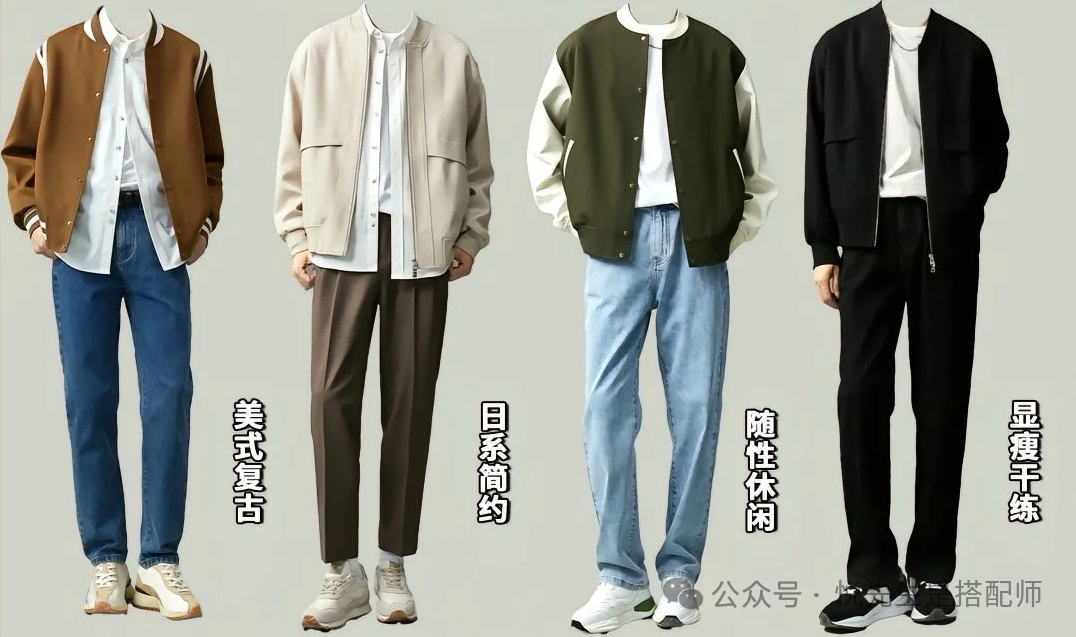 锥形西裤的剪裁线条流畅,能很好地修饰腿型,与棒球服的随性感和青春力形成鲜明对比。这种搭配让造型看起来更加干净纯粹,给人一种阳光活力的感觉。出街时,这样的搭配绝对能吸引众人的目光。同时,锥形西裤的搭配力也很强,即便是改变色调,也能与棒球夹克完美契合,让造型更加时髦有型。浅色系裤装为避免突兀,可以将夹克的袖口色调做同色系处理,衔接自然,增添独特和绅士感。