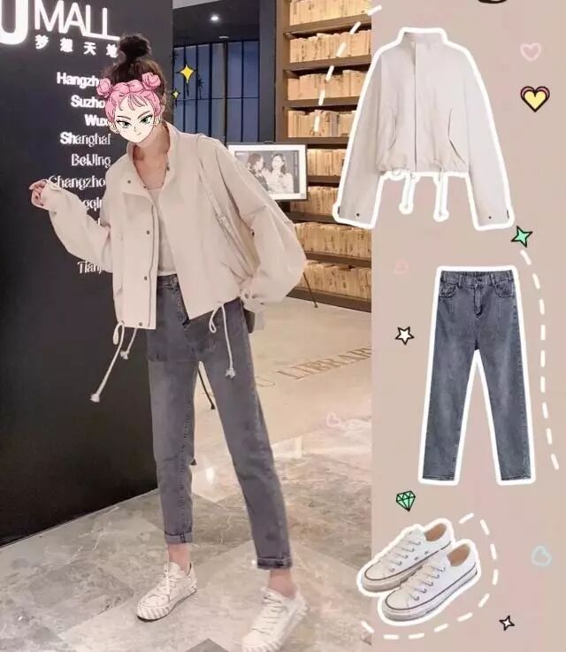 要说小个子女生最适合的外套长度,那一定非短款莫属,这一件温柔又低调的杏色短外套,下摆处抽绳设计,可以根据自己的要求进行调整,选择一条小脚九分牛仔裤,显瘦又拉长双腿比例,这么好看又时尚的搭配,你不打算借鉴一下么?
