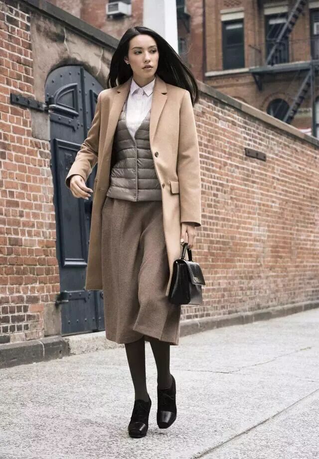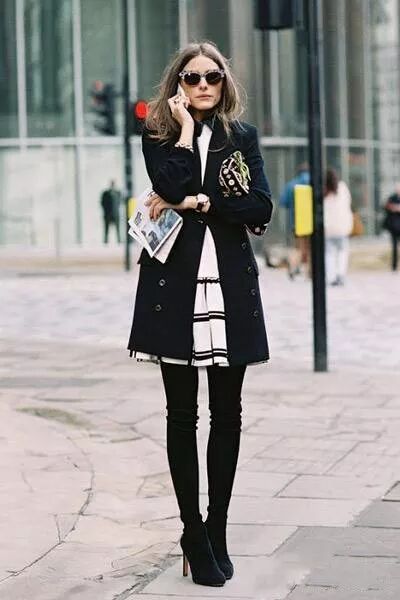 大衣内搭裙装,既简约又大气,可以让气质显得更为出众。