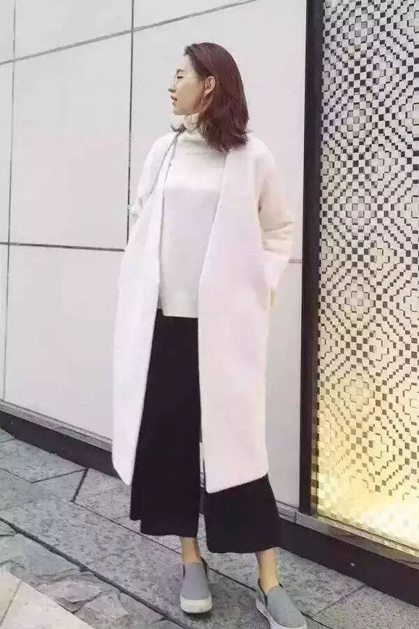 用大衣搭配阔腿裤,可以显得整个人非常有魅力,为你增加时髦度。