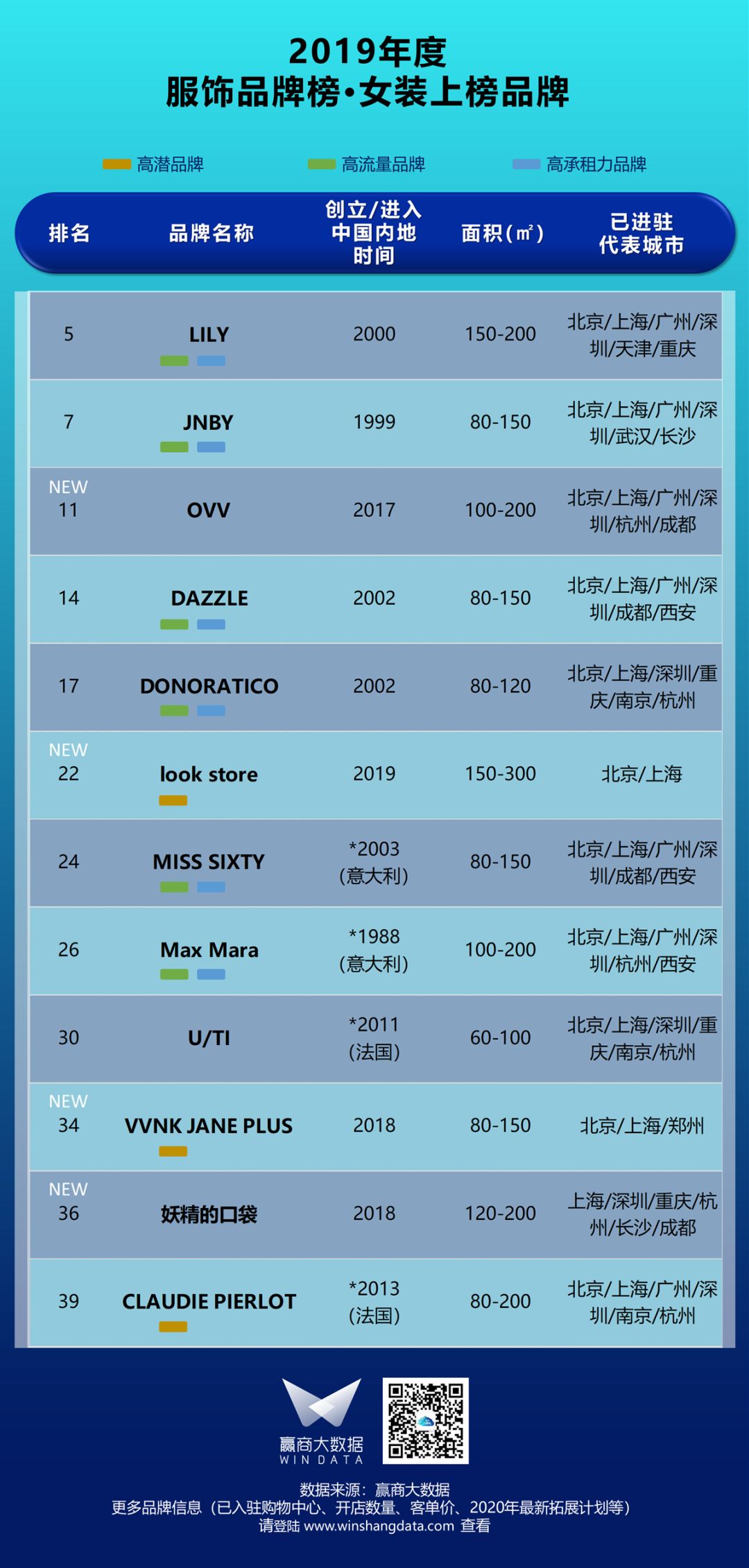2019年度购物中心关注服饰品牌榜TOP50特性总结