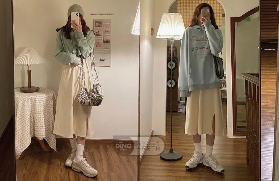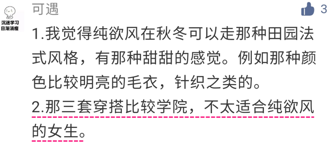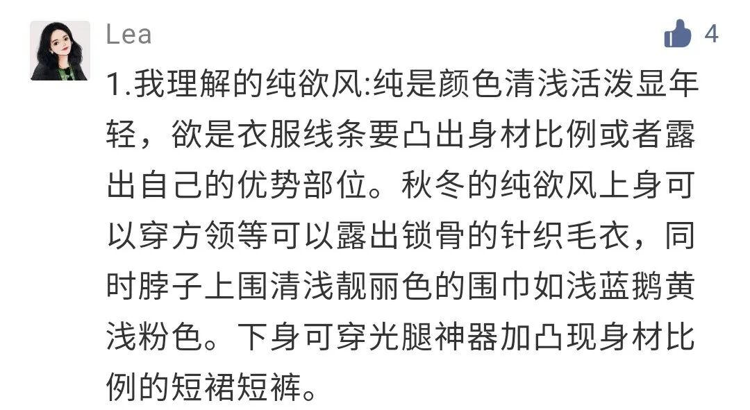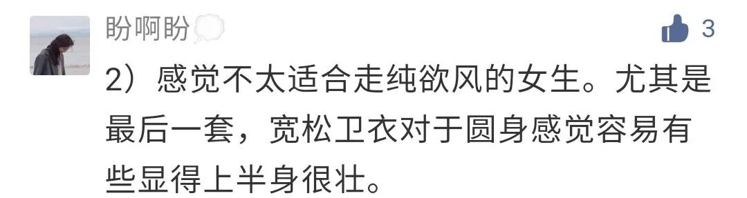 虽然颜色的选择是对的,但还是不属于纯欲风。因为太休闲了,比较学生气,没什么女性感,更偏向韩系校园穿搭了。