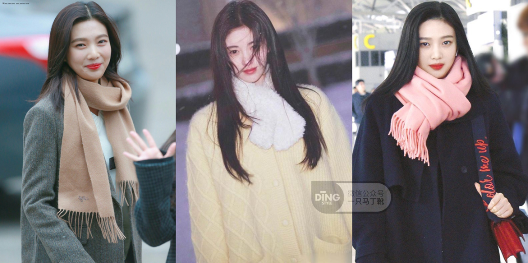 这些上衣在冬天穿可能还是会冷,选一条颜色温柔的围巾叠搭就能兼顾保暖了。不经意间会露出一点领口,到了室内也很方便拿下来展现衣服的设计感。
