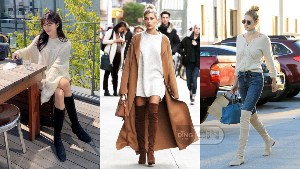 长筒靴也是一个适合营造女神感的单品,还在上大学不想太成熟就避开皮质,选麂皮材质,颜色上如果觉得黑色有点显闷,可以选棕色、米白色、灰色。