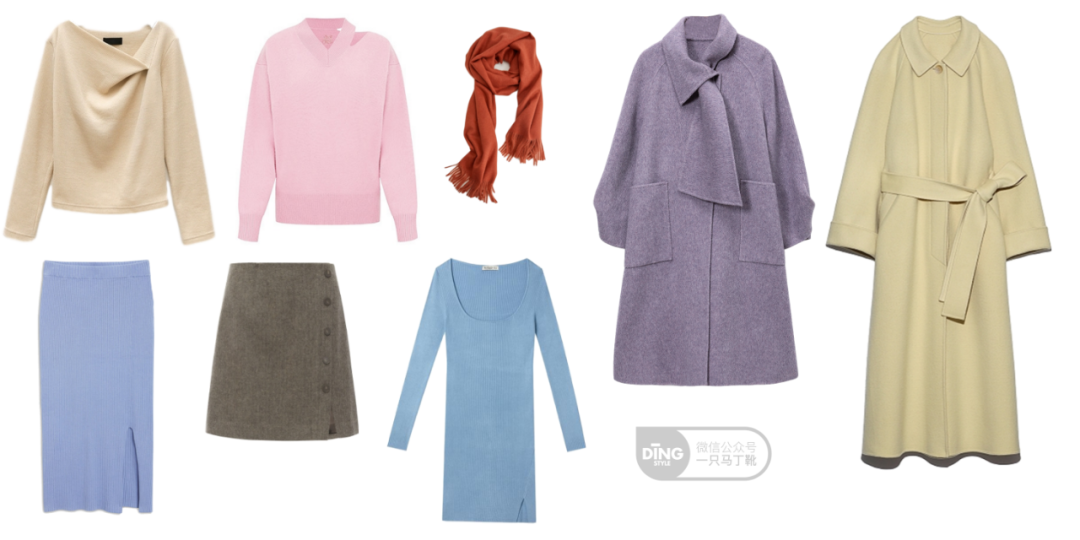 最主要、也是最简单的方法就是通过颜色来体现年轻女性感。比如白色、粉色、香芋紫、奶油蓝、鹅黄色。有种软糯少女感,点亮秋冬的萧瑟。