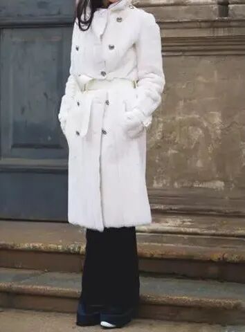 2. 白色大衣+同色腰带白色大衣或皮草,本身就会显臃肿,这时候一根同色腰带,不仅可以显瘦还能提高腰线,让你瞬间精致起来。