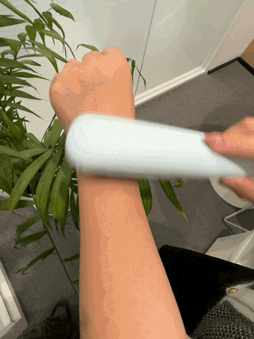 加热后梳子的外侧一点不烫,哪怕贴着皮肤也不会觉得刺激。