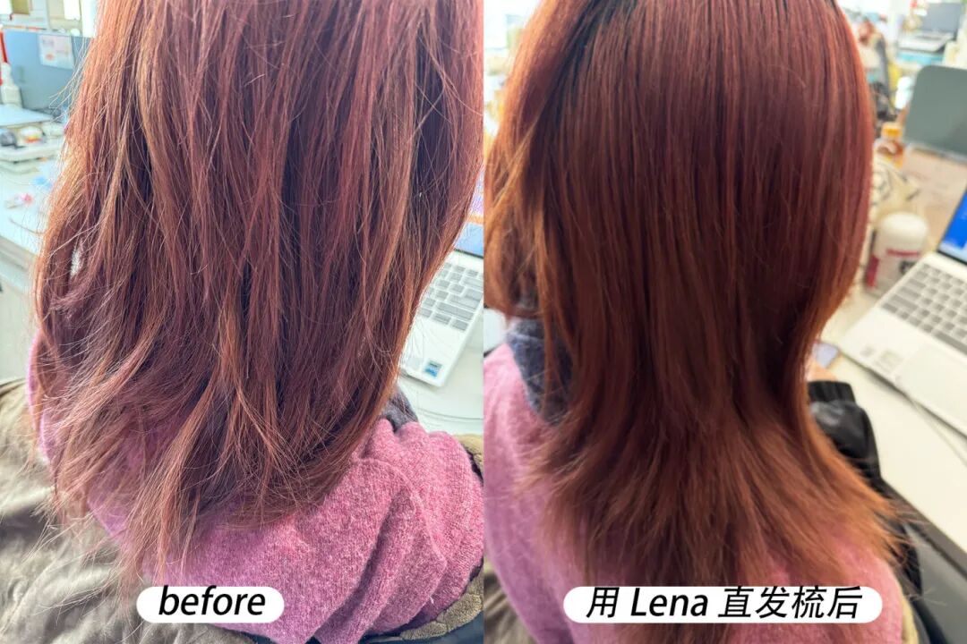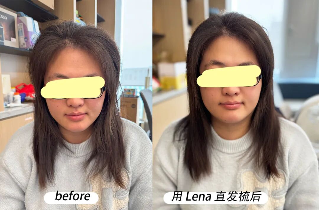 她抱着怀疑的心态试了试 Lena 直发梳,真香了!头发变柔变顺了,光泽也变好了。