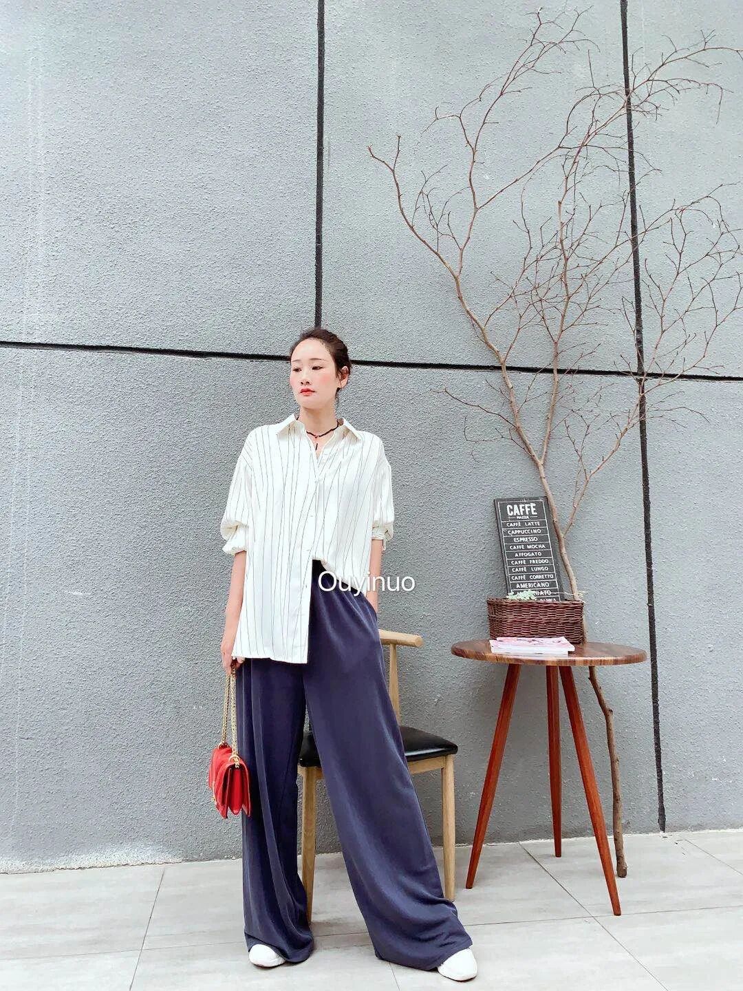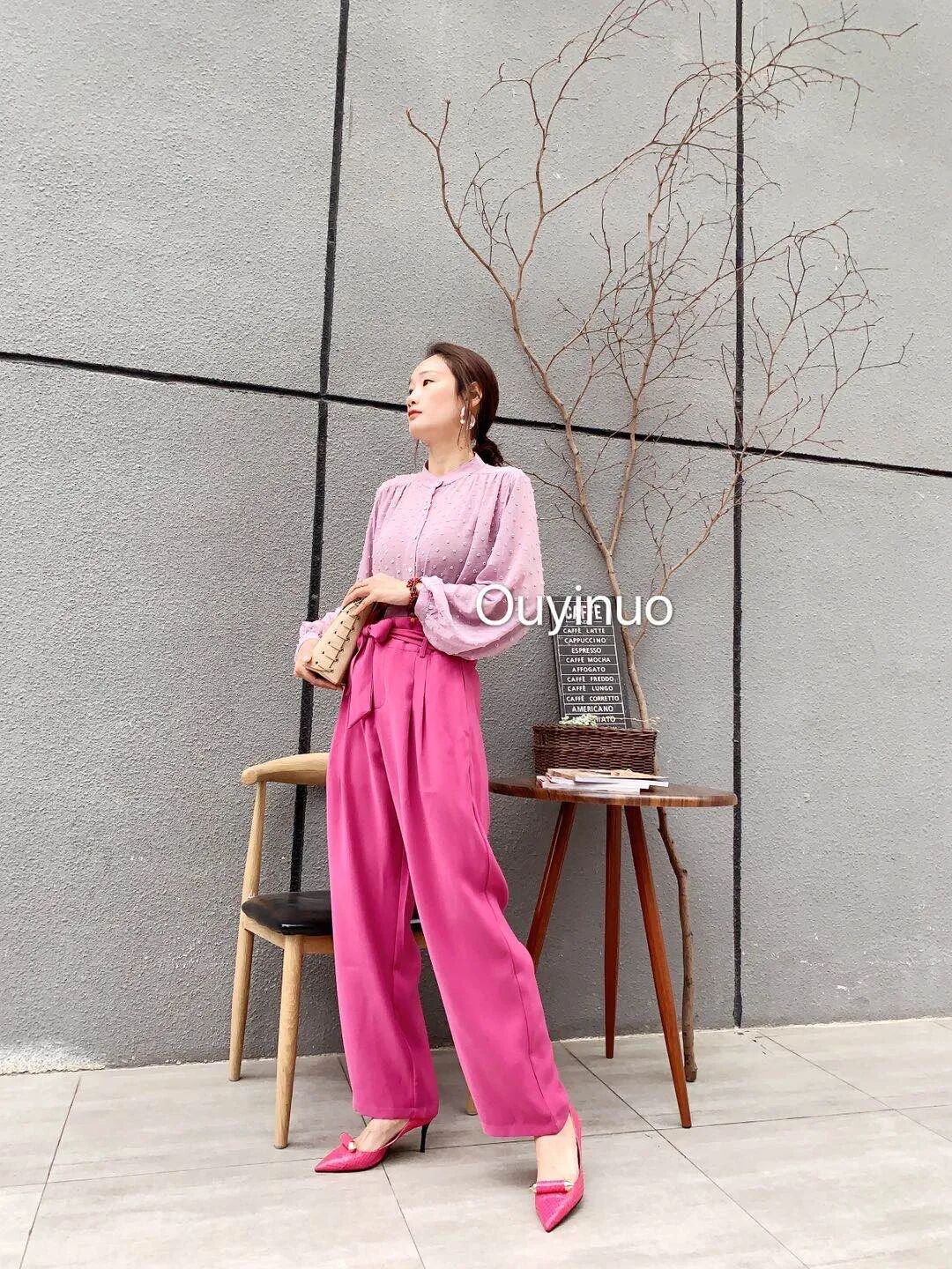 第二点,阔腿裤看起来更加的有拉长的效果,因为它把你大腿和小腿上的不完美穿都遮盖起来了,随着它直线的剪裁完美的呈现。如果是直筒或者小脚裤的话,稍微一个不小心大腿粗,裤子都会被穿没型了。