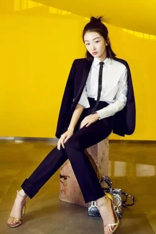 九分裤搭配尖头高跟露出了脚踝,这样的周冬雨看起来没有1米8?白色小西装搭配黑色高腰裤,不要太帅,妥妥地秒杀全场!