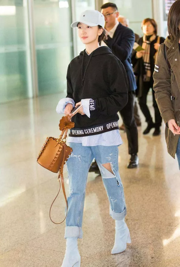 如果宝宝们想要显腿长,不防选择跟高在5cm以内的,既能保证脚的舒适度,还能变身大长腿。其实,周冬雨的很多短靴跟不高,但显高效果依旧。