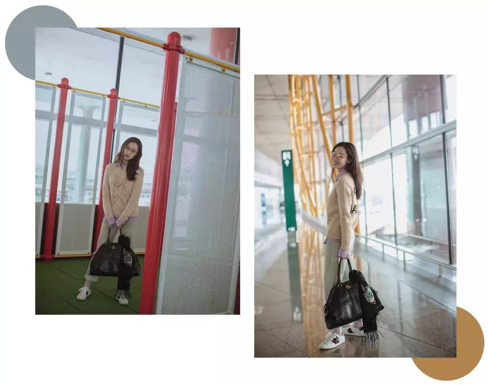 不同于之前女星钟爱简单百搭的造型,郭采洁的每一件衣服都有强烈的个人风格,毛衣从花纹到版型都有怀旧感。她在细节上的处理也不单单是帽子和包包,而是从袜子的搭配入手,强调细节。