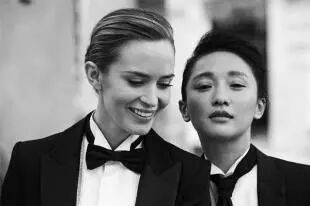 所以,不论怎样更改样式,它的本质都是男性化的,加上蕾丝什么的本就是不伦不类。来看看周公子的白衬衫,就明白什么叫做最简单的白衬衫演绎最经典的霸气,站在女王旁边个子矮也不输气势啊。