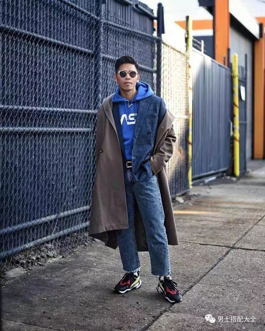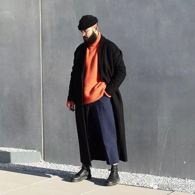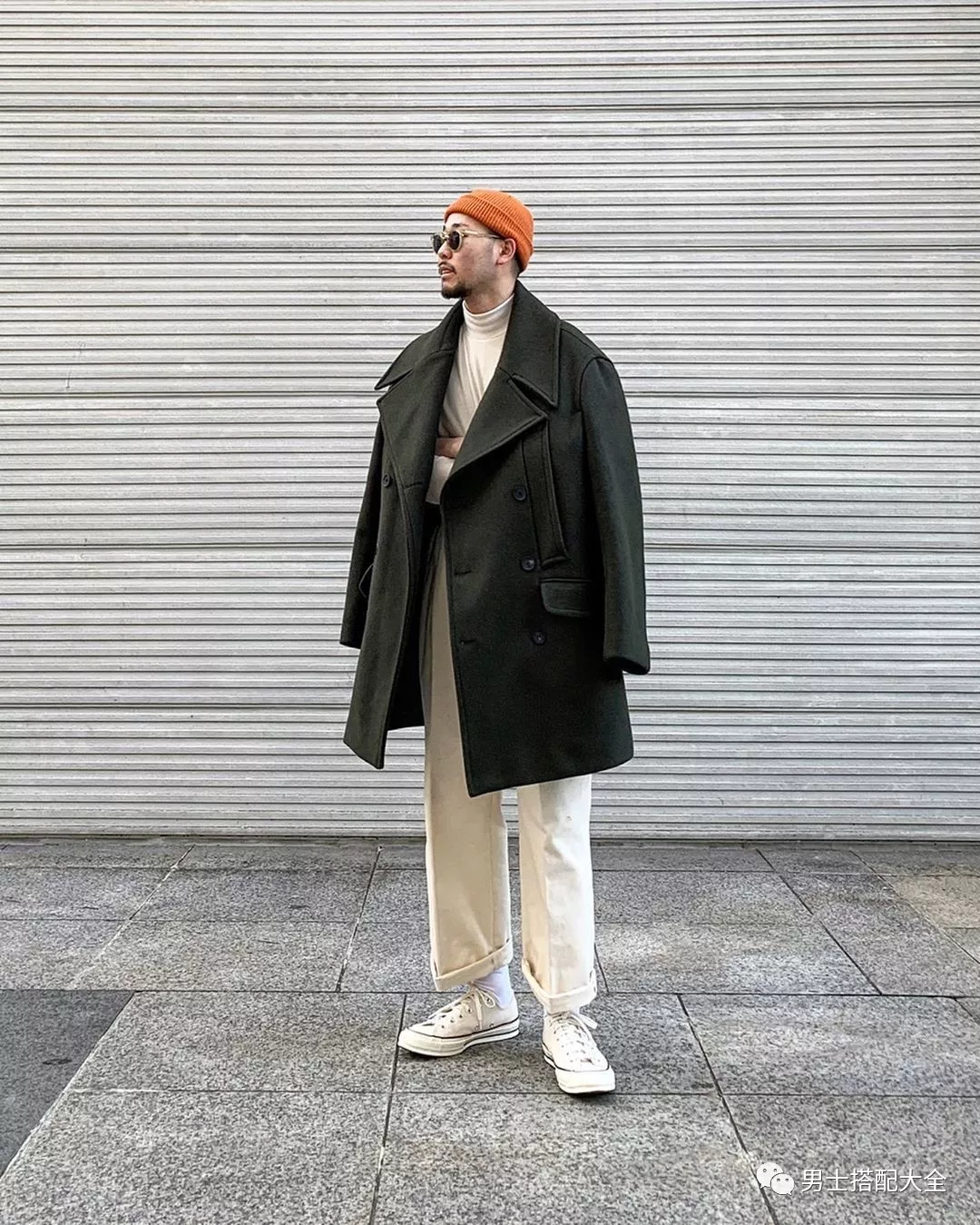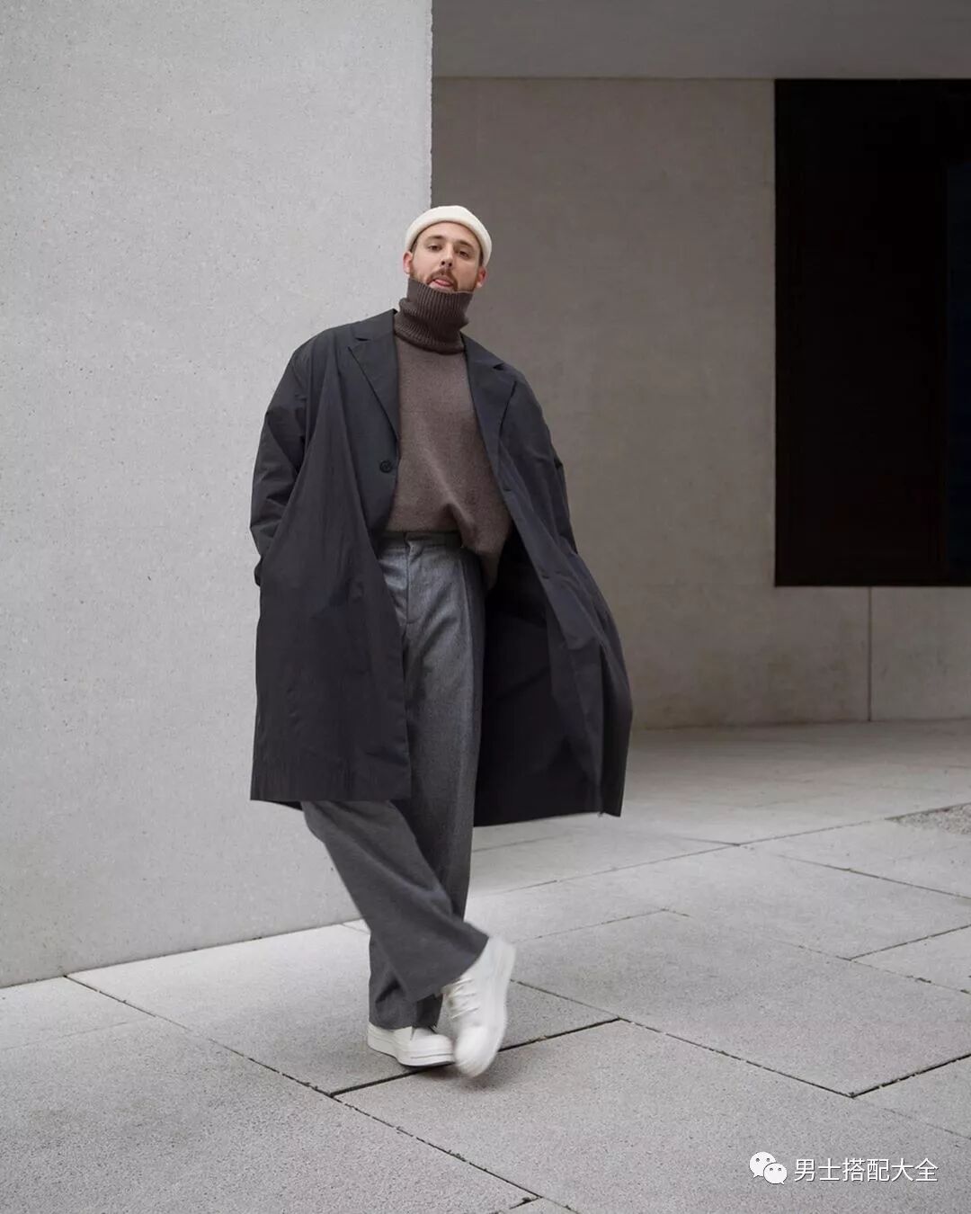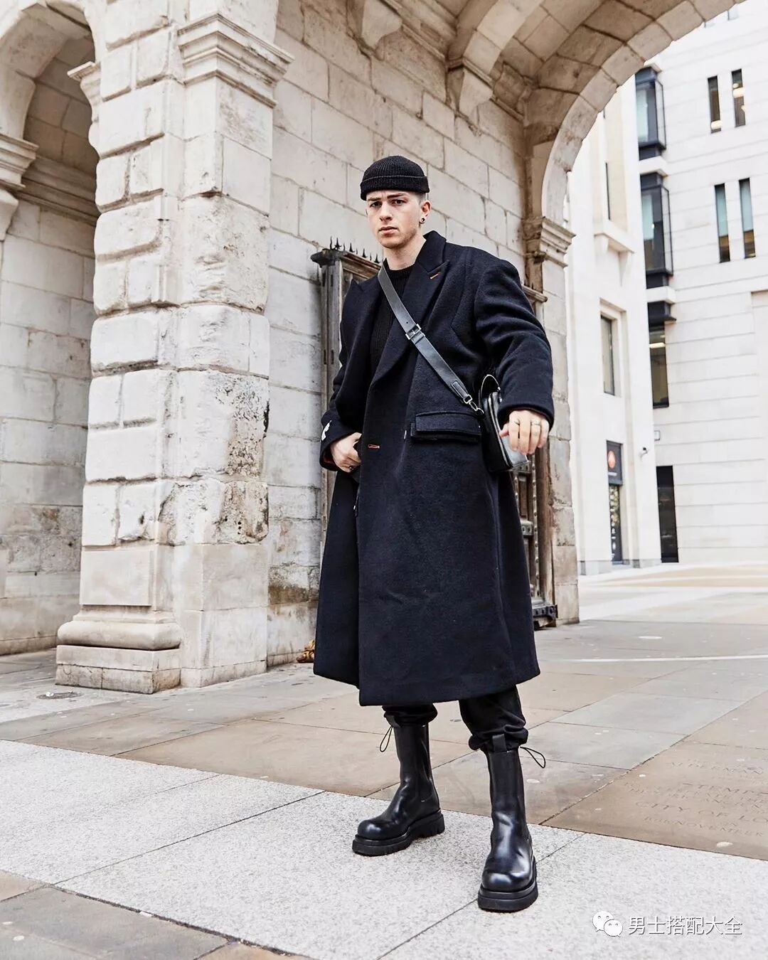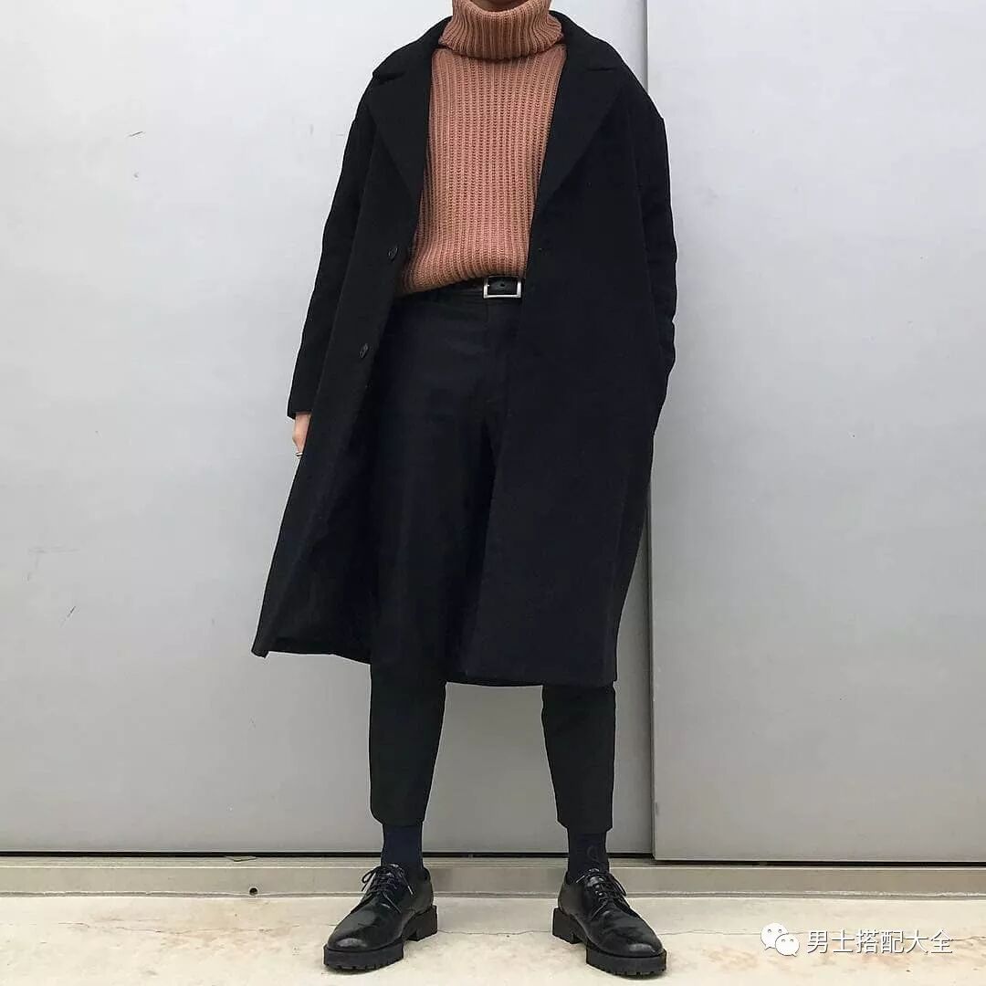 NO.3 深色系大衣+深色系内搭假设你的衣服都是比较暗色系的风格,例如卡其.深蓝.深灰等,那么就可以挑出其中色系统一的单品进行搭配。最好不要统一使用重色,除非你想要融入进伸手不见五指的黑夜,适当的加入亮一点的深色系元素,在不破坏整体造型的情况下,更有利于营造层次感。