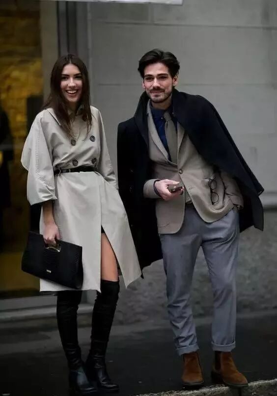 这时候大衣的长度就很重要了,一般来说最好是不要超过膝盖的,因为你还要考虑一下从后面看的效果。而如果你穿衣风格比较成熟,甚至可选择长度到大腿中部或者更短的pea coat。