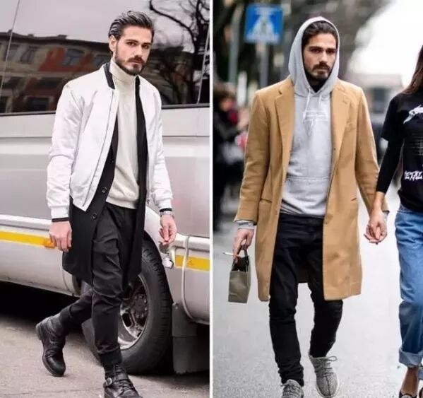 作为街拍红人Giotto Calendoli主要选择oversize的长款大衣,把大衣敞开,内搭突出腰线的位置,裤子也总是选择修身的款式;
