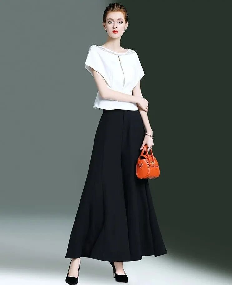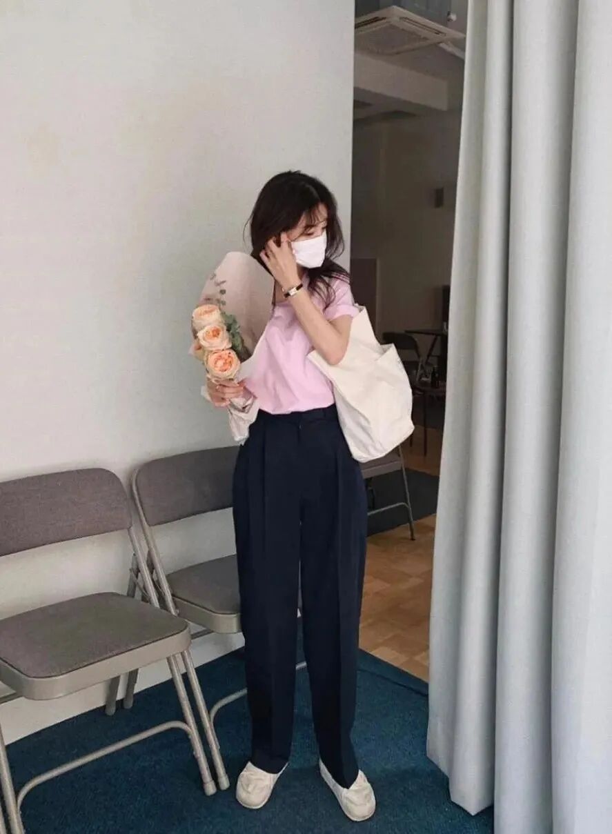 阔腿裤裤型上窄下宽,轮廓流畅充分修饰腿部的线条,随意穿件经典白T便能给人化繁为简的显贵与高挑。硬挺有型,腿粗或者腿型不好的的女生一定要多穿阔腿裤,轻轻松松就能把肉肉都遮起来。